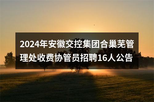 【2024年安徽交控集团合巢芜管理处收费协管员招聘16人公告】相关岗位: