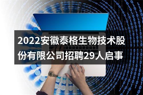 【2022安徽泰格生物技术股份有限公司招聘29人启事】相关岗位: