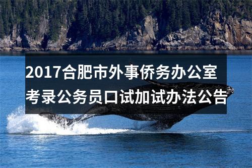 原标题:合肥市外事侨务办公室2017年考录公务员口试加试办法公告