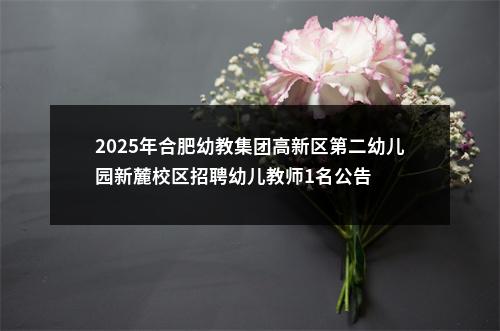 【2025年合肥幼教集团高新区第二幼儿园新麓校区招聘幼儿教师1名公告】相关岗位: