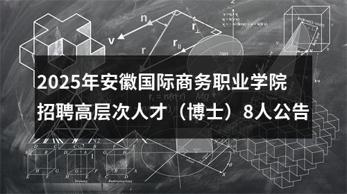 【2025年安徽国际商务职业学院招聘高层次人才(博士)8人公告】相关岗位: