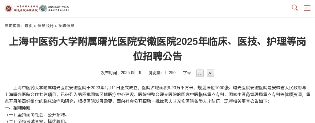 【2025年上海中医药大学附属曙光医院安徽医院招聘34人公告】相关岗位: